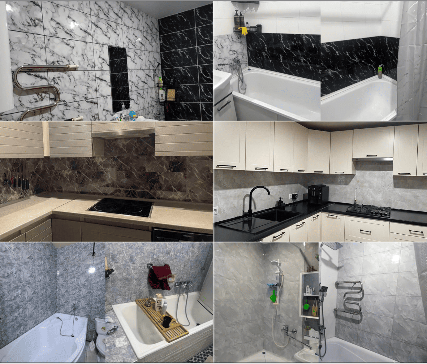 Вперше взагалі щось робила сама, без чоловіка. Купила самоклеючу плитку для ванної, обрала під мармур, виглядає суперово. Легко ріжеться та клеїться. Дякуюю!