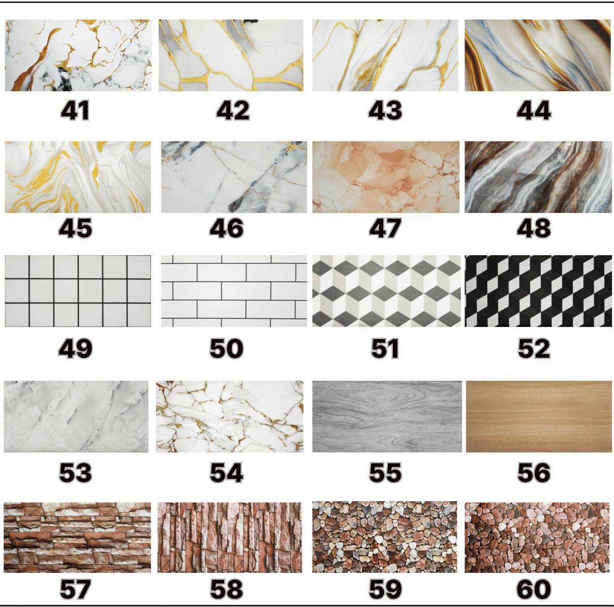 Великий вибір дизайнів, від однотонних до імітацій кераміки та дерева, дозволяє підібрати варіант, який ідеально пасуватиме до вашого інтерʼєру.